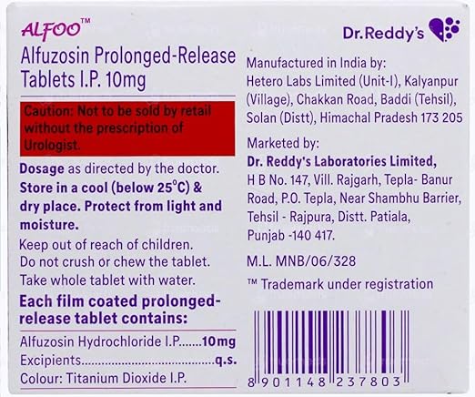 Alfuzosin relaxes the muscles of the prostate and bladder neck, helping urine pass more easily and relieving urinary symptoms.