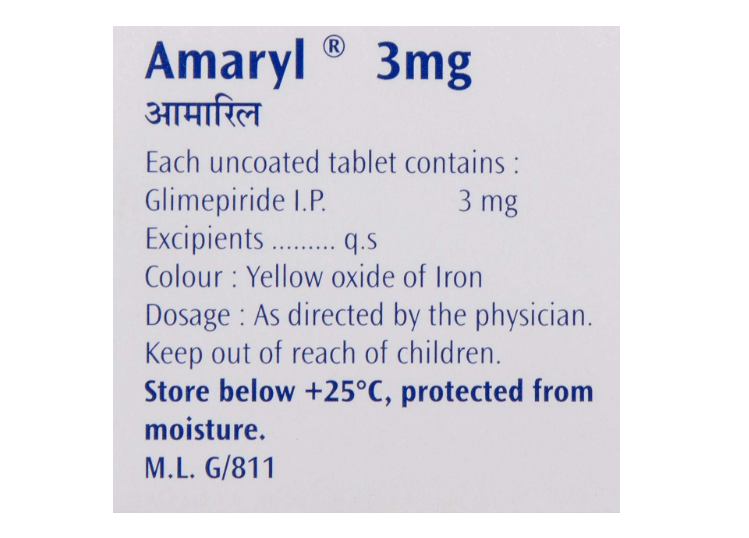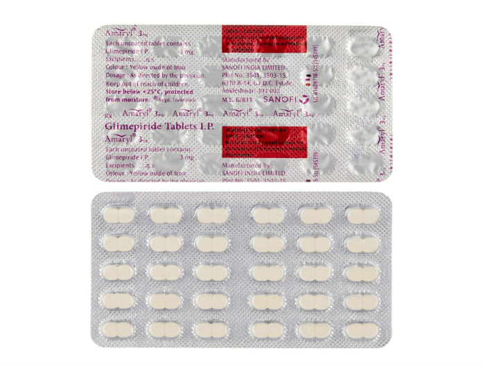 Amaryl 3 mg Tablet contains Glimepiride, an oral anti-diabetic medicine belonging to the sulfonylurea class. It helps in controlling high blood sugar levels in patients with Type 2 Diabetes Mellitus.