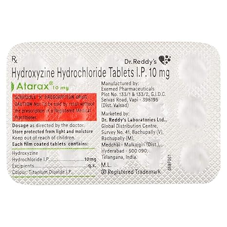 “Atarax (Hydroxyzine) helps relieve anxiety, allergies, and itching with a calming effect.”