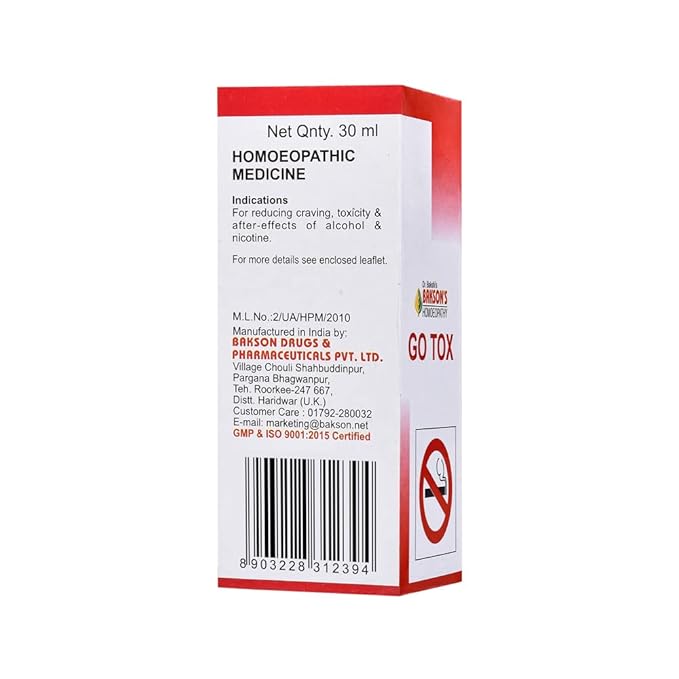 Dr. Bakshi’s (Bakson’s Homoeopathy) Go Tox Drops is a homeopathic formulation designed to help support the body in detoxification and purification processes. It assists in the elimination of toxins that may accumulate due to poor lifestyle, pollution, unhealthy diet, stress, or long-term medication. By gently promoting internal cleansing, it helps improve general health, digestion, skin clarity and overall vitality.