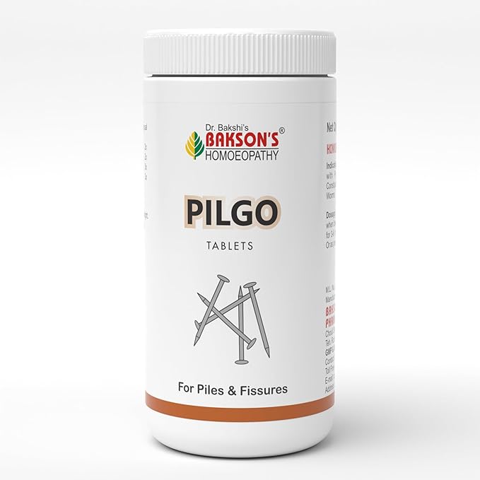 Bakson’s Pilgo Tablets is a homeopathic formulation specially designed to relieve symptoms associated with piles (hemorrhoids) including pain, bleeding, burning, and discomfort during bowel movements. It helps reduce inflammation of veins, promotes smoother evacuation, and supports overall rectal health naturally.