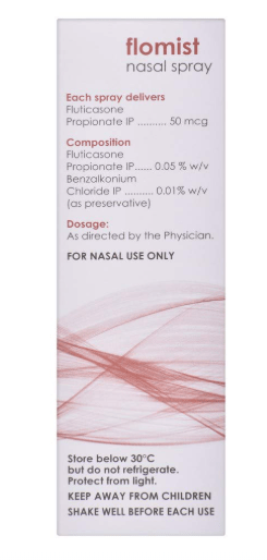 Flomist Nasal Spray is a steroid. It relieves the symptoms of rhinitis (blocked nose) such as runny nose, sneezing, and sinus discomfort. It works by blocking the production of certain chemical messengers that cause inflammation (swelling) and allergies, thus relieving the discomfort and irritation in your nose.