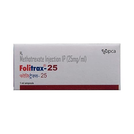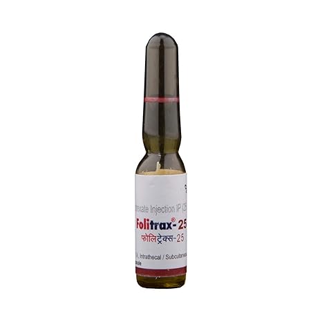 Folitrax 25 Injection contains Methotrexate, a folic-acid antagonist that works by inhibiting DNA synthesis and cell replication. It is a cytotoxic medication widely used in oncology for various cancers and in lower doses for autoimmune conditions such as rheumatoid arthritis and psoriasis. Folitrax 25 is provided in a 1 ml sterile ampoule, typically administered via intravenous (IV), intramuscular (IM), subcutaneous, or intra-lesional routes depending on the indication.