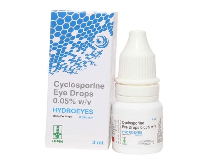 | Cyclosporine | 0.05% w/v (i.e. 0.5 mg/ml) | Immunomodulator – reduces ocular surface inflammation |