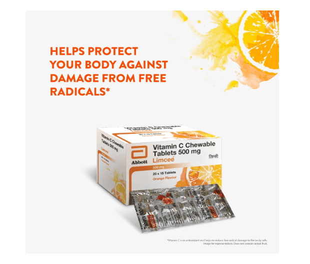 Use keywords like: Vitamin C chewable tablets, 500 mg vitamin C, Limcee chewable orange flavour, immune support vitamin C India, etc.