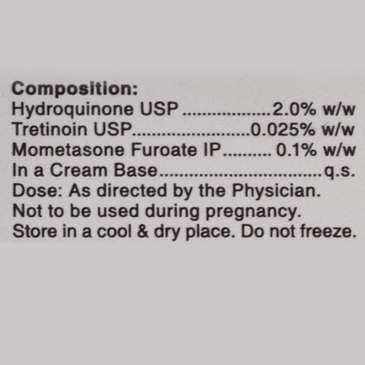 Hydroquinone 2% + Tretinoin 0.025% + Mometasone Furoate 0.1% w/w