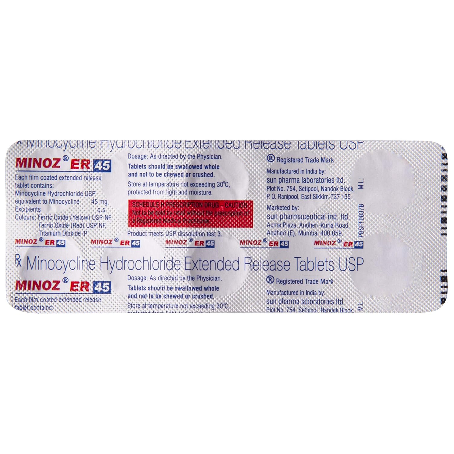 Minoz ER 45 is a lower-strength extended-release formulation of minocycline designed for effective and convenient treatment of bacterial infections, particularly acne, with once-daily dosing and a well-established safety profile when used under medical supervision.