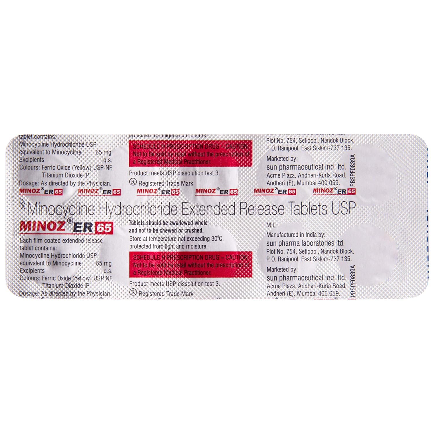 Minoz ER 65 is an oral extended-release tablet belonging to the tetracycline group of antibiotics. The extended-release formulation allows gradual release of minocycline over time, helping maintain stable drug levels in the body.
