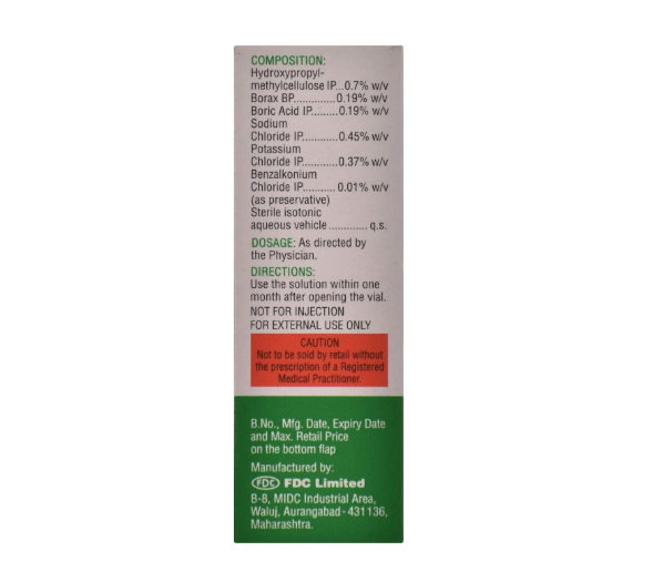 The main ingredient, Hydroxypropyl Methylcellulose (HPMC 0.7%), acts as a tear substitute that mimics natural tears and helps retain moisture on the eye surface, providing lasting comfort. The combination of borax, boric acid, and electrolytes (sodium and potassium chloride) helps maintain the natural pH and osmotic balance of tears, ensuring gentle protection for sensitive eyes.