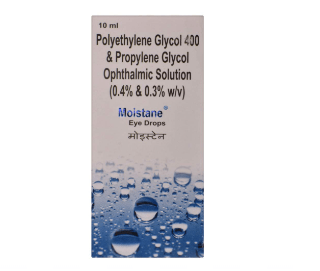 Moistane Eye Drops provide soothing relief from dryness and irritation of the eyes. The dual lubricants, Polyethylene Glycol and Propylene Glycol, help to keep the eyes moist and comfortable, reducing the feeling of burning or grittiness caused by environmental factors like wind, heat, or prolonged screen use.
