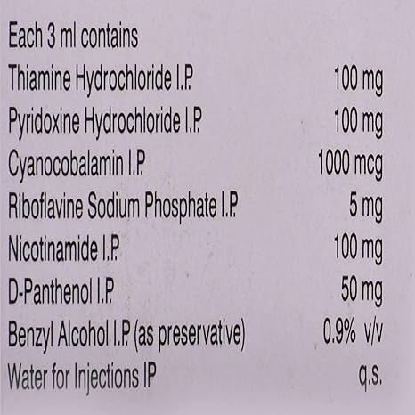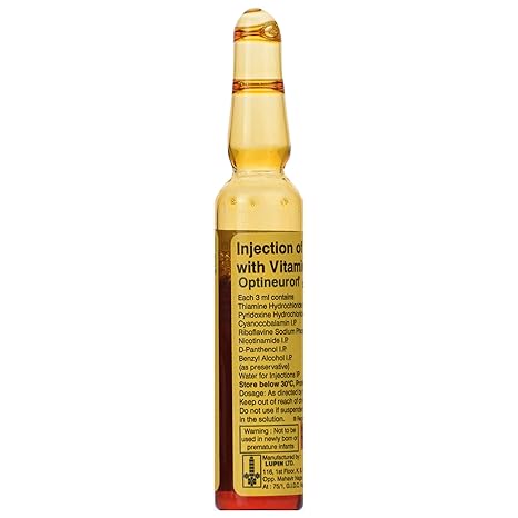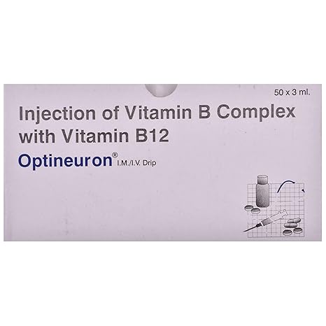 Optineuron Injection is a high-potency neurotropic vitamin complex formulated to support nerve health and treat deficiencies of B-complex vitamins. It contains a powerful combination of Vitamin B1, B2, B3, B5, B6, and B12, all essential for nerve regeneration, energy production, and overall metabolic balance. With Cyanocobalamin 1000 mcg and other key B-vitamins, Optineuron is widely used to treat neuropathy, neuralgia, neuritis, weakness, and vitamin deficiency states.