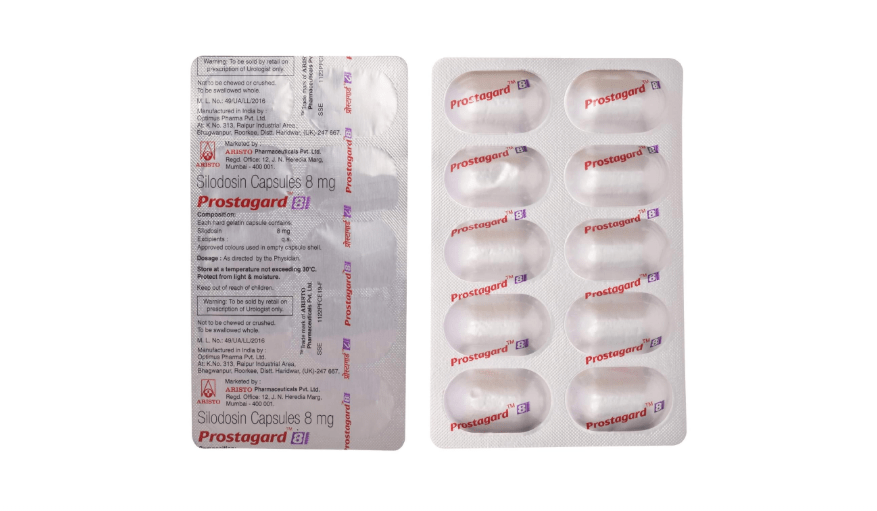 Prostagard 8 Capsule is an alpha-adrenergic antagonist that is used in the treatment of benign prostatic hyperplasia. It helps to relieve symptoms like difficulty in passing urine. However, it does not decrease the size of the prostate.