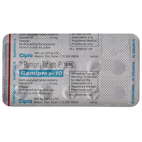Ramipres-10 mg (Cipla Ltd) – MRP around ₹221.66 per strip of 10 tablets (may vary by batch/retailer) PharmEasy+1