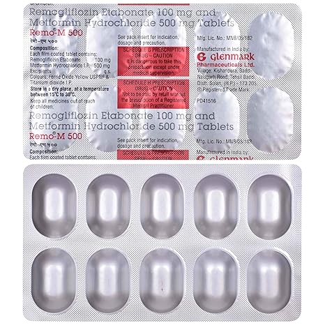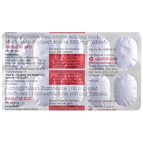 Remo-M 500 Tablet is a combination oral antidiabetic medication designed for the management of type 2 diabetes mellitus. Each tablet contains Remogliflozin Etabonate 100 mg and Metformin Hydrochloride IP 500 mg. The combination provides dual action to help control blood glucose levels effectively in patients whose blood sugar is not adequately managed with diet, exercise, or monotherapy.