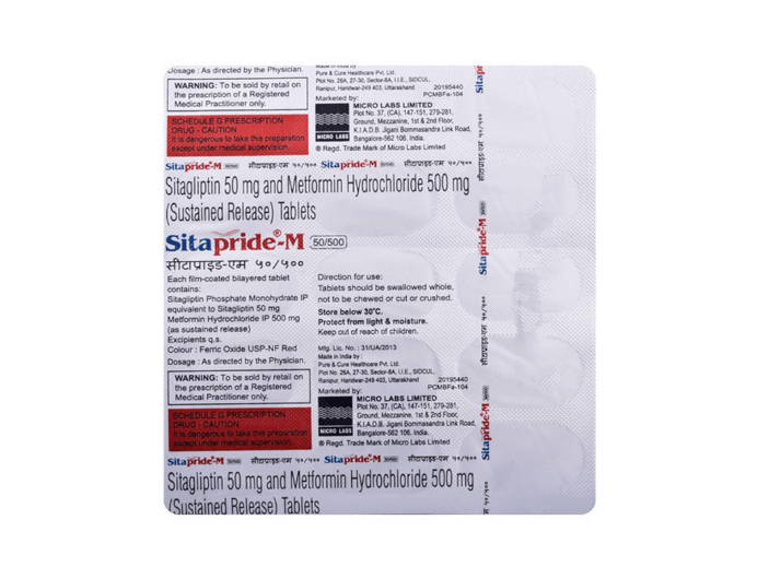 Sitapride M 50/500 mg is an oral anti-diabetic medication that helps control high blood sugar levels in people with Type 2 Diabetes Mellitus.