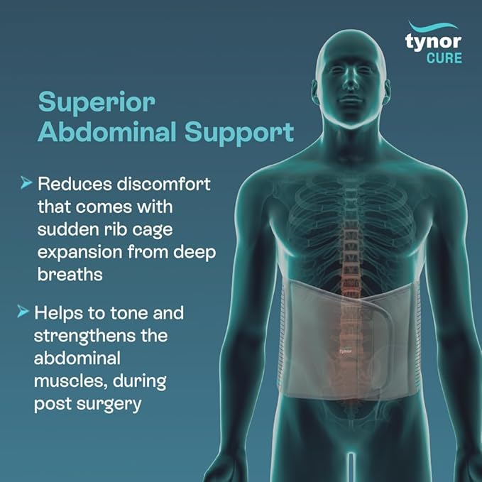 Tynor Abdominal Support is specially designed to provide firm and even compression around the abdominal region after surgery, pregnancy, or in cases where abdominal muscles require additional support and toning. With a height of 9 inches (23cm), this belt comfortably covers the abdominal area and helps maintain proper posture while reducing strain on the lower back.